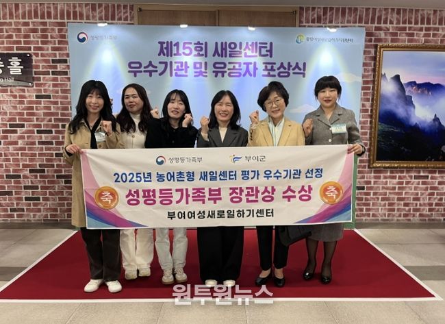 (원투원뉴스) 부여여성새로일하기센터가 ‘2026년 여성새로일하기센터 유공 포상식’에서 성평등가족부 장관상을 받았다고 1일 밝혔다.