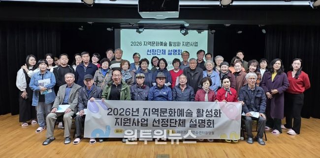(원투원뉴스) (재)영월문화관광재단(대표이사 박상헌)은 2026년 지역문화예술 활성화 지원사업에 최종 선정된 예술인 및 단체 43팀을 대상으로 사업설명회를 개최했다고 밝혔다.