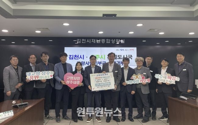 (원투원뉴스) 상주시 건설도시국에서는 3월 31일 김천시청에서 김천시 건설도시국을 비롯한 부서 관계자들이 참석한 가운데‘고향사랑 기부제’상호기부 협약식을 가졌다.