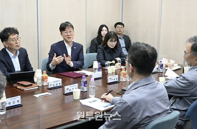 이날 구홍림 대표는 원자재 수급 부담과 구조 고도화 사업의 지속 지원, 공공용수 감면 등 현장의 애로사항을 전달했다. 이민근 시장은 생산 라인을 직접 둘러보며 지원 방안에 대해 의견을 나눴다.