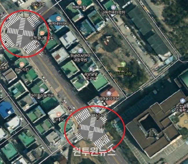 (원투원뉴스) 논산시가 안전한 보행 환경 조성을 위해 관내 최초로 ‘대각선 횡단보도’설치를 추진한다.