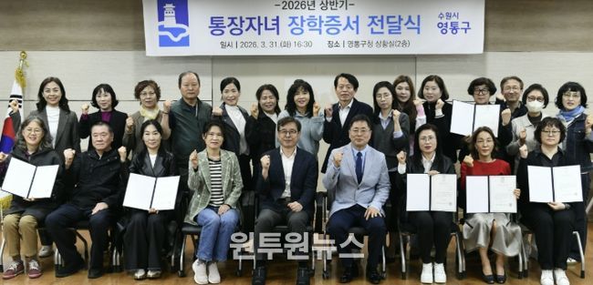 (원투원뉴스) 수원시 영통구는 지난 3월 31일 구청 상황실에서 2026년 상반기 통장자녀 장학증서 전달식을 개최했다.