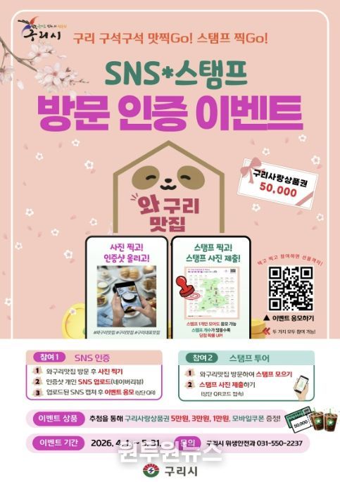 시 관계자는 “이번 행사는 시민들이 구리의 다양한 맛집을 직접 경험하고 사회관계망 서비스를 통해 공유하는 참여형 홍보 행사”라며 “특히 새롭게 도입한 도장 찍기 여행을 통해 지역 곳곳의 숨은 맛집을 즐기는 계기가 되길 바란다”라고 말했다.