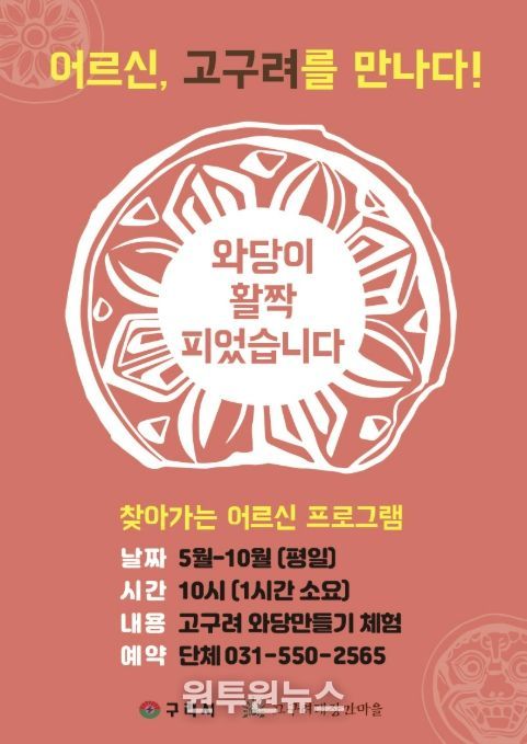 구리시 관계자는 “이번 프로그램을 통해 어르신들이 고구려 문화를 직접 체험하며 활력 있는 시간을 보내시길 바란다”라며 “세대 간 문화 향유 격차를 해소하고 우리 역사에 대한 자긍심을 높이는 계기가 되길 기대한다”라고 밝혔다.