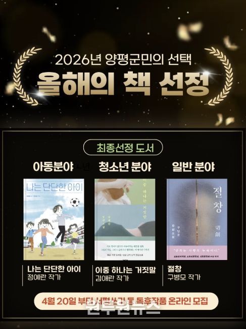 (원투원뉴스) 양평군은 군민 참여로 진행된 2026년 ‘올해의 책’ 투표를 마무리하고, 최종 선정 도서를 발표했다.