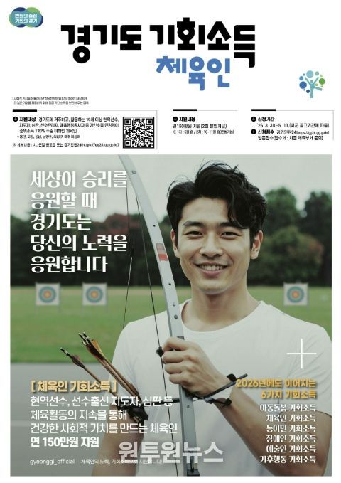 (원투원뉴스) 가평군은 3월 30일부터 5월 11일까지 ‘2026년 경기도 체육인 기회소득’ 신청 접수를 받는다.
