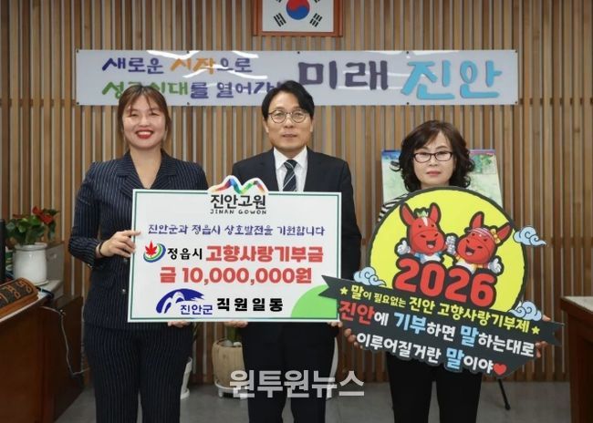 (원투원뉴스) 진안군청과 정읍시청 직원들이 고향사랑기부제를 통해 상호 기부에 나서며 지역 상생 협력의 모범을 보였다.