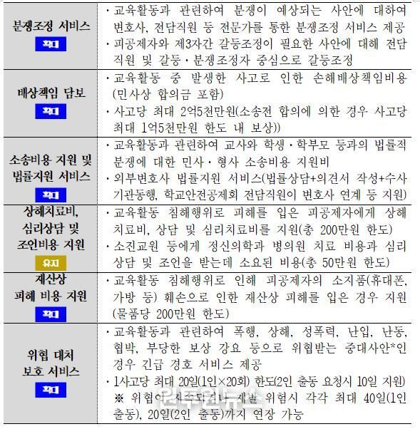 이번 교원 보호 공제는 교육활동 침해 발생 시 초기 대응부터 사후 처리까지 전 과정에 걸쳐 교원을 보호하는 데 중점을 뒀다.