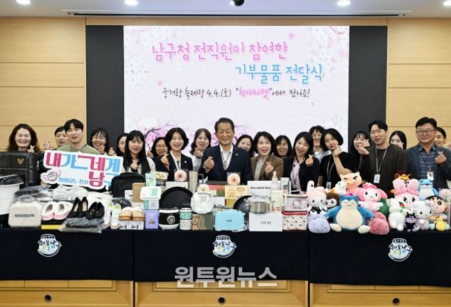 남구는 직원들의 자발적 참여를 통한 자원 재순환과 따뜻한 기부문화 확산을 위해 기부물품 전달식을 마련했으며 지난 3월 16일부터 이날까지 인형, 생활용품, 가전제품 등 300여 점을 모아 전달했다.