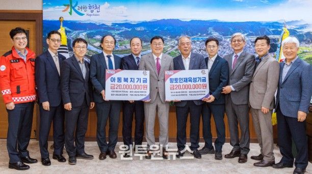 (원투원뉴스) 합천군은 31일 산림조합중앙회 엔지니어링사업본부와 도내 7개 시·군 산림조합이 군수실을 방문해 아동복지기금과 인재육성기금으로 총 4,000만원을 기탁했다고 밝혔다.