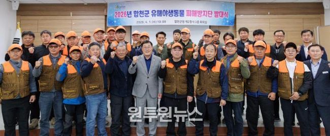 (원투원뉴스) 합천군은 4월 1일 합천군청 제2청사 3층 회의실에서 ‘2026년 유해야생동물 피해방지단 발대식’을 개최했다.