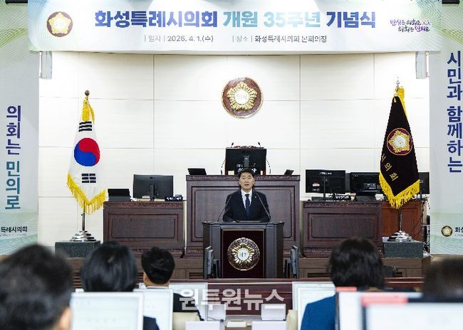 (원투원뉴스) 화성특례시의회는 1일 본회의장에서 개원 35주년 기념식을 개최하고, 지난 의정활동의 성과를 돌아보며 미래를 향한 새로운 도약의 의지를 다졌다.