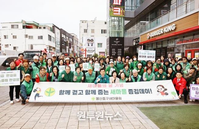 이날 행사에는 김영길 중구청장과 박경흠 중구의회 의장, 이성룡 울산시의회 의장, 새마을지도자, 지역 주민 등 100여 명이 참여해 거리에 버려진 쓰레기를 수거했다.