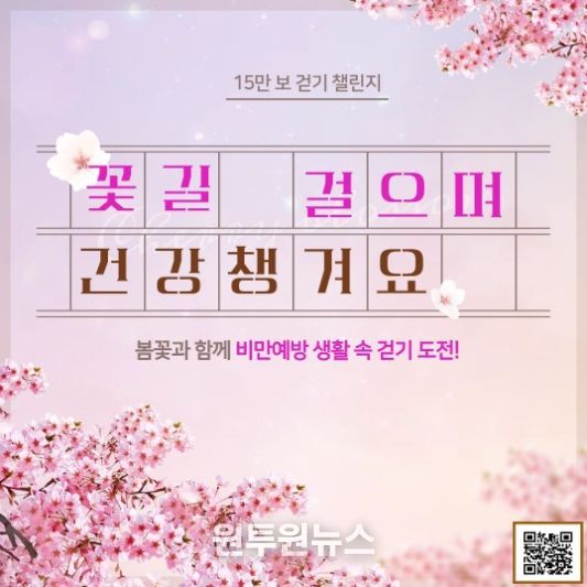이번 챌린지는 총 15만보 걷기 달성하고, 봄꽃 길이나 공원 등 야외 공간에서 걷기를 실천하는 사진을 1회 인증하는 것이 목표이다. 이를 통해 참여자들이 꾸준한 걷기 습관을 형성하여, 주민들이 일상에서 자연스럽게 신체활동을 늘리고 걷기를 통해 비만을 예방함으로써 건강 증진과 스트레스 완화를 동시에 도모할 수 있는 것이 특징이다.