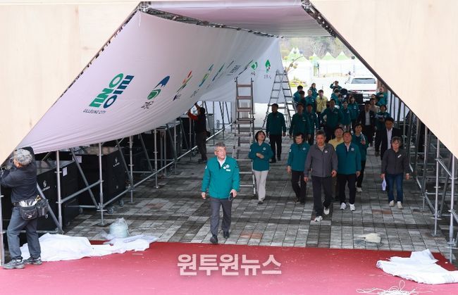 이번 점검에서는 농·특산물 판매와 홍보·체험부스가 설치되는 천년숲부터, 공동개최의 첫 시작을 알리는 경북도청 새마을광장을 차례로 방문해 주요 시설 현황과 관리 상태를 점검했다.
