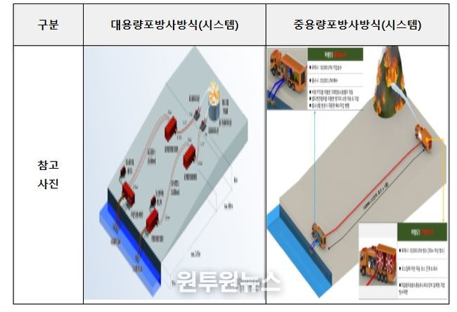 중앙119구조본부는 2022년 영남권, 2026년 충청권 배치에 이어 2027년에는 호남권에 대용량포방사방식(시스템)을 도입할 예정이다.