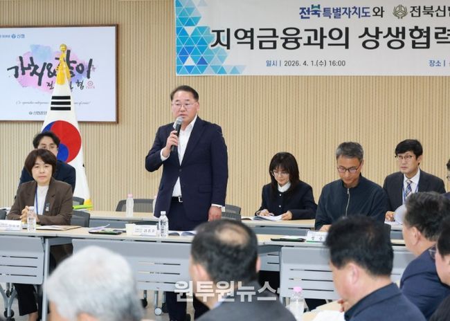 (원투원뉴스) 전북특별자치도는 1일 신협 전북지역본부에서 김종훈 경제부지사를 비롯해 양춘제 신협 전북지역 협의회장, 허동욱 전북본부장, 도내 신협 이사장 등 50여 명이 참석한 가운데 ‘지역금융과의 상생협력을 위한 간담회’를 개최했다고 밝혔다.