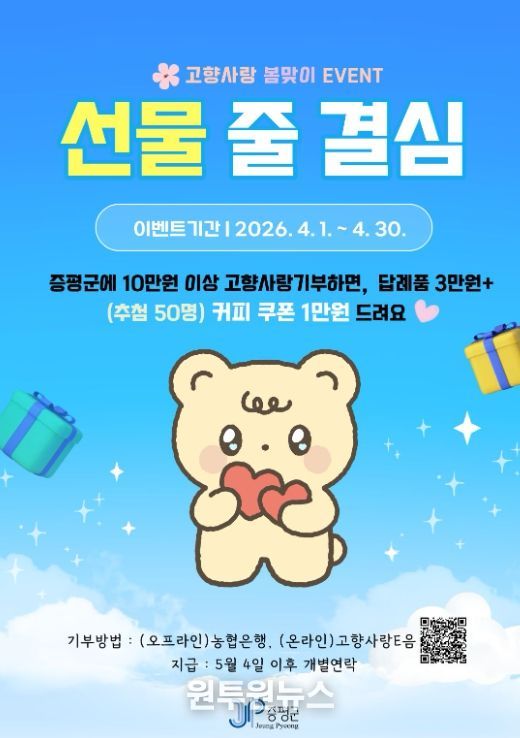 (원투원뉴스) 충북 증평군이 봄을 맞아 이달 30일까지 고향사랑기부 이벤트를 진행한다.