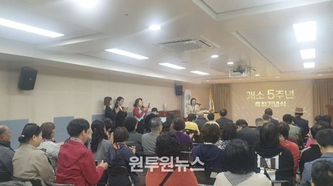 (원투원뉴스) 예산군 장애인종합복지관 부설 주간보호센터는 지난 1일 복지관 소강당에서 개소 5주년 기념행사를 개최했다.