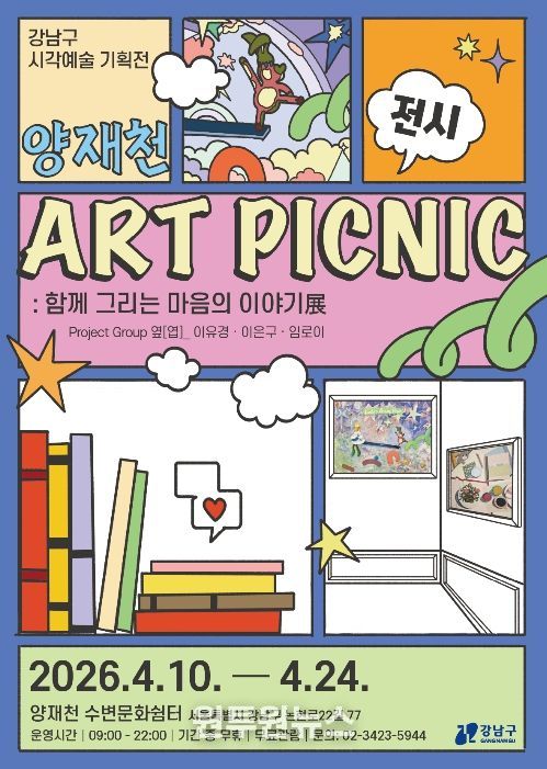 (원투원뉴스) 꿈이 모이는 도시, 미래를 그리는 강남구가 4월 10일부터 24일까지 양재천 수변문화쉼터에서 참여형 시각예술 기획전 ‘아트 피크닉(ART PICNIC) : 함께 그리는 마음의 이야기전’을 연다.
