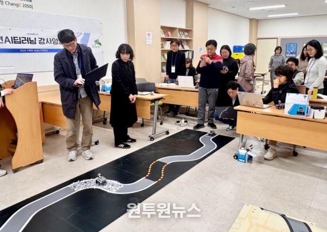 교육은 총 15명을 선발해 지난 3월 11일부터 운영 중이며, 현장 활용도를 높인 실무 중심으로 ▲AI 딥러닝 기초 이론 ▲자율주행 로봇 실습 ▲사물인터넷(IoT) 기반 앱 제작 ▲AI 딥러닝 교육 교수법 등으로 구성됐다.