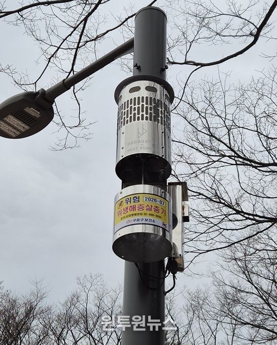 (원투원뉴스) 구로구가 모기 등 위생해충으로 인한 주민 불편을 줄이고 감염병을 예방하기 위해 관내 공원 3곳에 포충기 13대를 설치했다.