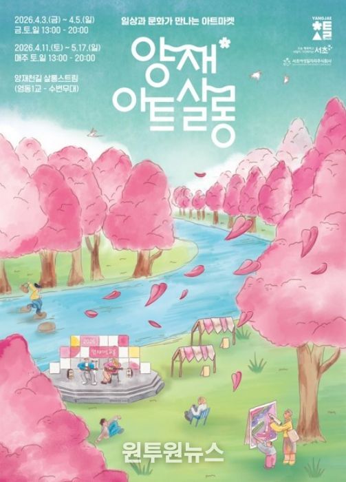 (원투원뉴스) 서울 서초구가 이번달 3일부터 다음달 17일까지 양재천 일대에서 봄맞이 ‘양재아트살롱’을 운영한다고 밝혔다.