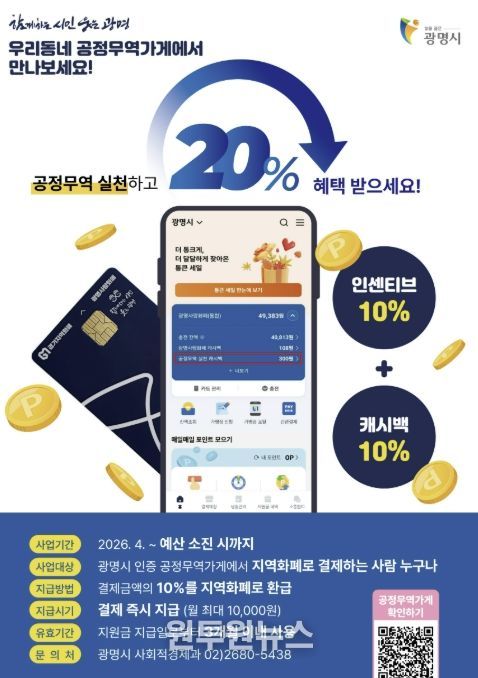 최혜민 광명시장 권한대행(부시장)은 “공정무역과 지역화폐를 연계한 이 사업은 시민 참여 속에서 실질적인 성과를 확인한 정책”이라며 “앞으로도 시민이 일상에서 사회적 가치를 실천할 수 있도록 다양한 정책을 지속 추진하겠다”고 밝혔다.