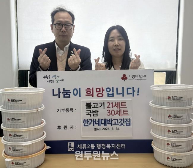 (원투원뉴스) 지난 31일, 수원시 권선구 세류2동에 위치한 한가네 대박고깃집은 국밥 30그릇과 불고기 20세트를 세류2동행정복지센터에 기탁했다.