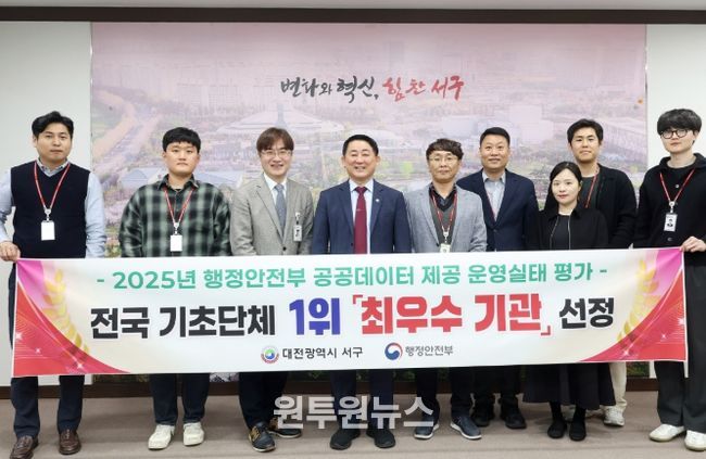 (원투원뉴스) 대전 서구는 행정안전부 주관 ‘2025년 공공데이터 제공 운영실태 평가’에서 전국 226개 기초자치단체 중 유일하게‘최우수(매우 우수)’ 등급을 받으며 전국 1위를 차지했다.