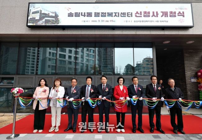 (원투원뉴스) 인천 동구는 지난달 31일 주민 중심 행정서비스 제공과 복지 기능 강화를 위해 송림4동 행정복지센터 신청사 개청식을 개최했다고 밝혔다.
