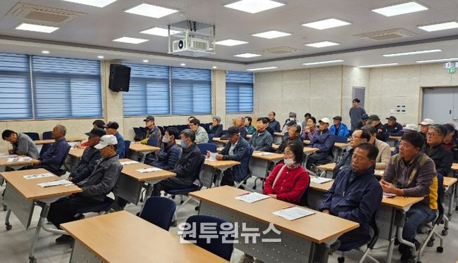 이번 교육은 최근 고온 등 기상변화로 깨씨무늬병 발생이 늘어나는 추세에 대응하고, 농가 피해를 사전에 줄이기 위해 마련됐다. 교육은 지난해 깨씨무늬병 발생이 심했던 필지의 경작자 150명을 대상으로 진행됐다.