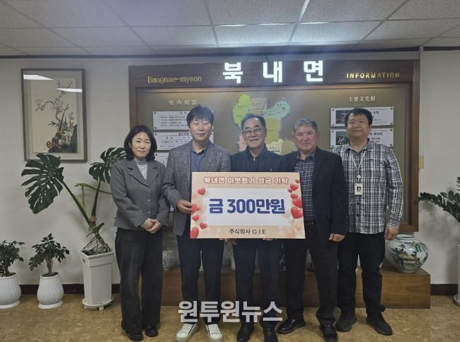 (원투원뉴스) 북내면행정복지센터는 2026년 4월 1일 ㈜G.I.E 홍광표 대표가 지역 내 어려운 이웃을 위해 300만 원을 지정기탁했다고 밝혔다.