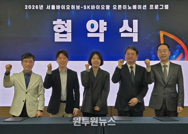 (원투원뉴스) 서울시가 국내 대표 제약사 SK바이오팜과 협력하여 추진한 ‘2026 서울바이오허브-SK바이오팜 오픈이노베이션’ 프로그램의 성과로 바이오 스타트업 2개사를 최종 선정하고, 본격적인 기술 협력 및 성장 지원에 나선다.