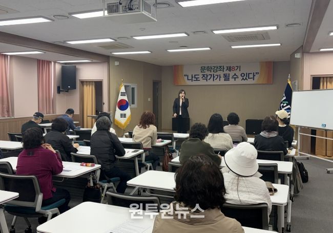 (원투원뉴스) 경산시립장산도서관에서 운영하는 문학 강좌 '나도 작가가 될 수 있다' 제8기가 1일 개강했다. 본 강좌는 문학에 관심 있는 시민들을 대상으로 12주간 운영한다. 총 55명의 수강생이 참여하며, 매주 수요일에는 시 강의, 목요일에는 수필 강의가 각각 오전 10시부터 2시간씩 진행된다.