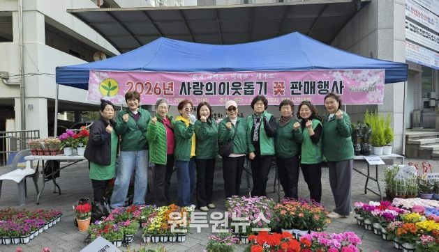 (원투원뉴스) 새마을지도자 양주시부녀회는 지난 3월 31일 회천3동 행정복지센터 앞마당에서 ‘2026년 사랑의 이웃돕기 꽃 판매행사’를 성황리에 개최하였다.