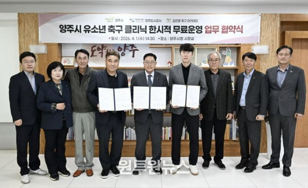 앞서 지난 1일 양주시와 양주도시공사, 김은중 축구 아카데미는 유소년 축구 클리닉 운영을 위한 업무협약을 체결하고 기관 간 역할 분담과 협력체계를 구축했다.