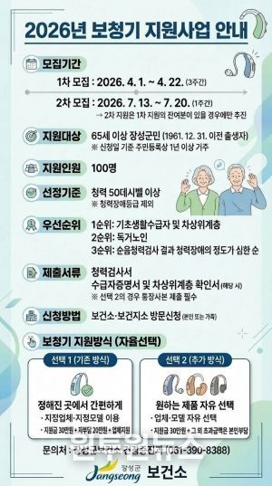 (원투원뉴스) 장성군이 올해부터 어르신 보청기 지원사업에 ‘선택형 지원 방식’을 도입한다.
