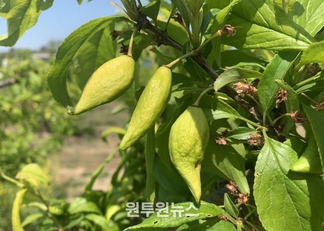 (원투원뉴스) 김천시는 자두 주머니병 발생이 우려됨에 따라 농업인들에게 적기 방제를 철저히 해줄 것을 당부했다.