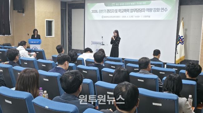 (원투원뉴스) 충청북도진천교육지원청은 4월 2일 학교지원센터 시청각실에서 2026. 상반기 관리자 및 학교폭력 책임교사 대상 역량 강화 연수를 실시했다.