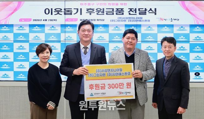 이날 후원된 성금은 총 300만 원으로, ㈜서강엔지니어링, ㈜그린자원, ㈜지앤에스환경 3사가 뜻을 모아 각각 100만 원씩 마련했다. 전달된 성금은 미추홀구 내 저소득층 및 복지 사각지대에 놓인 취약계층을 위한 다양한 지원 사업에 사용될 예정이다.