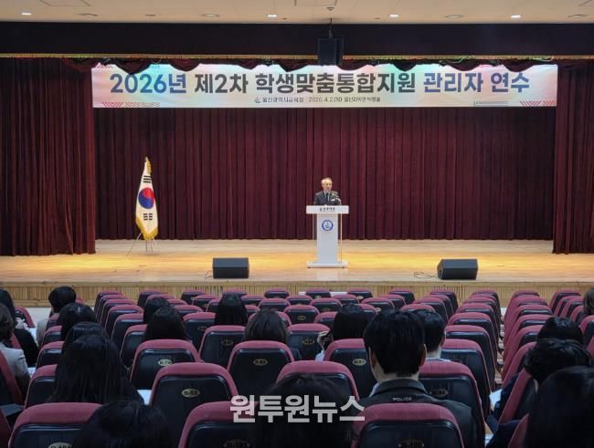 천창수 교육감은 “학생맞춤통합지원은 한 명의 학생도 놓치지 않겠다는 울산교육의 책임을 학교 현장에서 실현하는 핵심 정책”이라며 “학교 관리자를 중심으로 교사와 전문 인력, 지역사회가 함께 협력하는 촘촘한 지원 체계를 구축해 모든 학생의 전인적 성장을 뒷받침하겠다”라고 말했다.