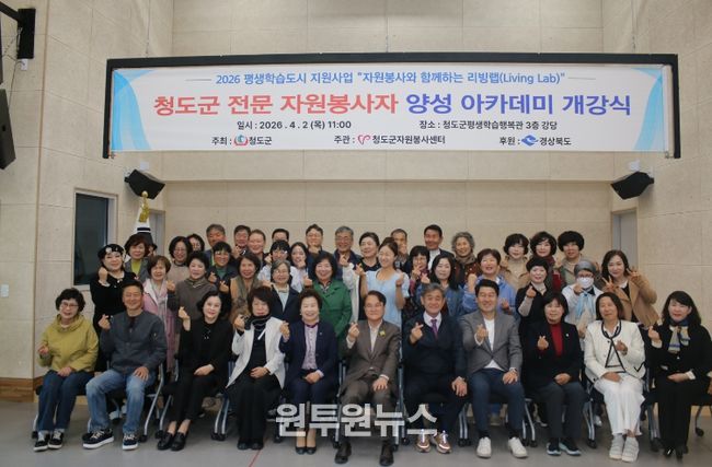 (원투원뉴스) 청도군은 2일 청도평생학습행복관 다목적강당에서 내빈 및 수강생 50여 명이 참석한 가운데『청도군 전문자원봉사자 양성 아카데미』개강식을 성황리에 개최했다.