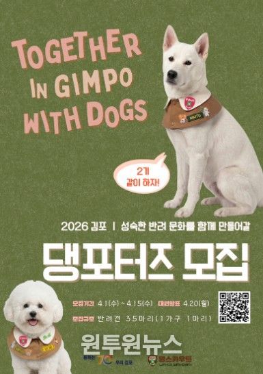 (원투원뉴스) 김포시는 올바르고 책임 있는 반려문화 확산을 이끌 ‘김포 댕포터즈’를 모집한다고 밝혔다.