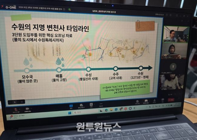 (원투원뉴스) 경기도수원교육지원청은 4월 2일 관내 초등 3학년 담임교사를 대상으로 '2026 초등 3학년 지역화 교재(우리 지역 수원) 활용 연수'를 온라인으로 실시했다.