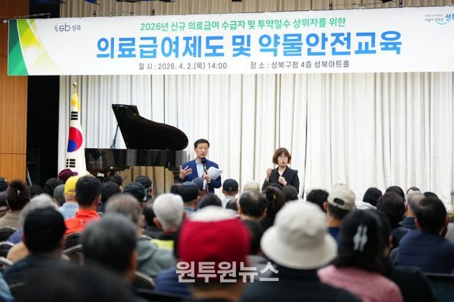 (원투원뉴스) 서울 성북구가 4월 2일 오후 2시 2026년 신규 의료급여수급자 및 투약일수 상위자 272명을 대상으로 '의료급여제도 및 약물안전교육'을 실시했다.