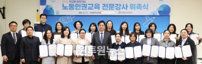 (원투원뉴스) 인천광역시교육청은 2일 학생들이 노동의 가치를 배우고 인권 감수성을 함양할 수 있도록 돕는 ‘2026학년도 학교로 찾아가는 노동인권교육 전문강사단’ 위촉식을 개최했다.