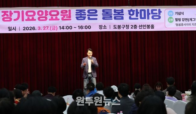 (원투원뉴스) 서울 도봉구가 지난 3월 27일 도봉구청 선인봉홀에서 장기요양요원의 노고를 격려하고 돌봄 서비스의 사회적 가치를 확산하고자 '2026년 도봉구 장기요양요원 좋은 돌봄 한마당'을 개최했다.