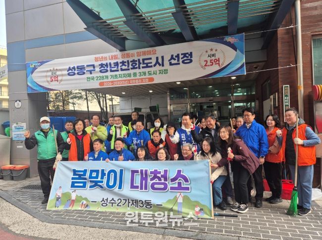 (원투원뉴스) 서울 성동구에서는 동별로 주민들과 함께 2026년 봄을 맞아 대청소를 실시하여 마을환경을 정비했다고 밝혔다.