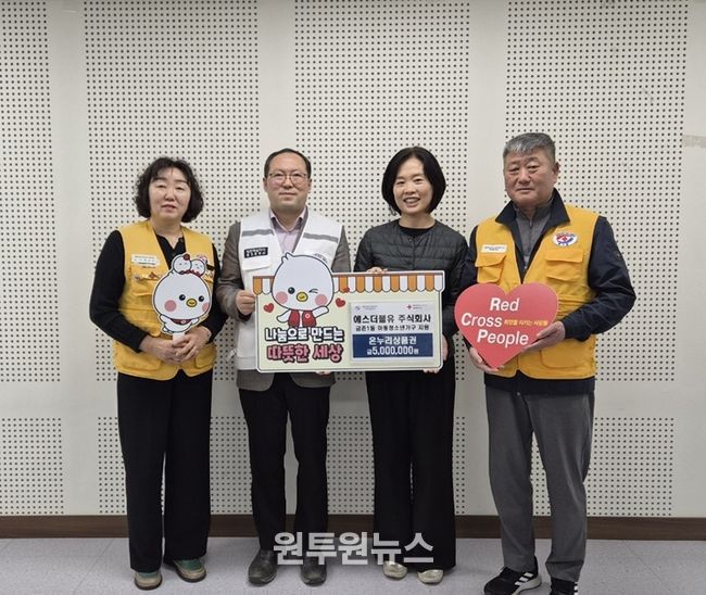 (원투원뉴스) 파주시 금촌1동은 지난 1일 대한적십자사를 통해 ㈜에스더블유가 지역사회 취약계층 아동·청소년 위한 상품권을 기부했다고 밝혔다.